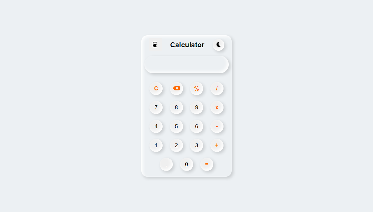 A simple calculator using html and javascript with dark mode and neourphosim effect